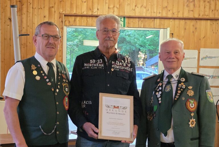Ein besonderer Höhepunkt lag auf der Ehrung von Wilfried Schragen, der auf eine 50-jährige Tätigkeit als Bezirksreferent für Armbrust zurückblickt. Ebenso begleitet er Ämter im Schützenkreis 116 Rhein-Ahr und in seinem Verein, dem GSSV Bölingen. Seit 2008 ist er Mitarbeiter des RSB und für die Durchführung der Landesmeisterschaft Feldarmbrust verantwortlich. Wilfried Schragen ist selbst erfolgreicher Sportschütze auf Landes- und Deutschen Meisterschaften mit vielen Medaillentiteln.