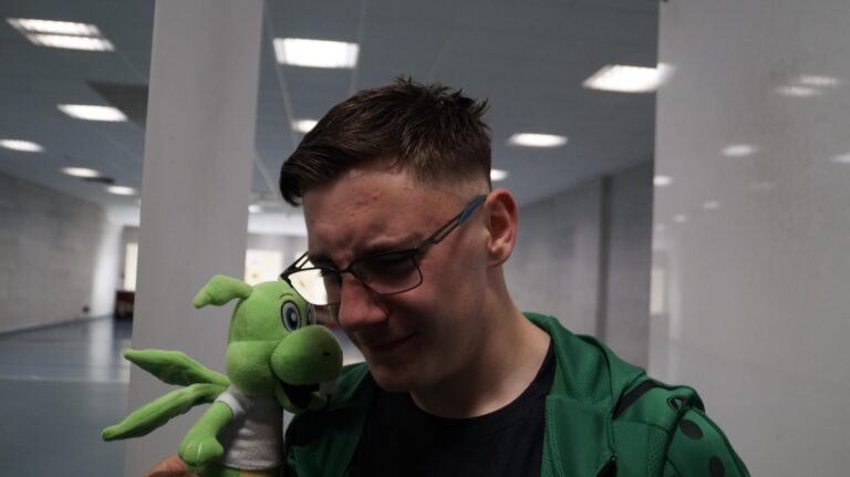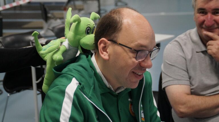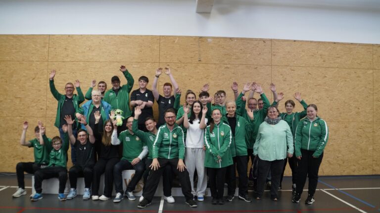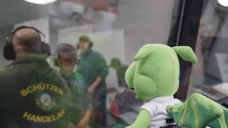 Der Sonntag startete mit einer erfrischenden Dusche und einem ausgewogenen Frühstück, ehe es wieder in Halle zu den nächsten Wettkämpfen ging. Nach dem Einrichten der Technik, wo ich natürlich wieder mitgeholfen habe, ging es erneut ans gemeinsame Aufwärmen mit den Sportlerinnen und Sportlern. Nach den Wettkämpfen vom Vortag habe ich einigen Schützinnen und Schützen geholfen, ihre Kartuschen wieder aufzufüllen – Maskottchen-Ehrensache auch hier zu helfen! Ich konnte bei einem erfolgreichen Wettkampf zusehen und so auch noch meiner echten Maskottchen-Aufgabe nachgehen: Mit den Schützinnen und Schützen feiern!