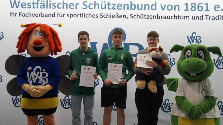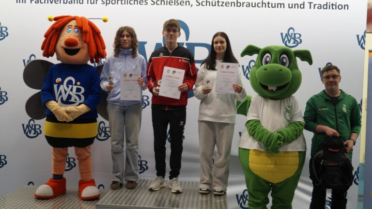In der Klasse LG Jugend m setzte sich Alexander Jünger (SSG Asterstein / 1156,0 Ringe) vor Tobias Junkermann (St. Hub. SBr. Porz-Urbach / 1139,2) durch – Lina Hay (St. Hub. SBr. Gevenich / 1182,1), Fenja Stratmann (BSV Germania Voerde / 1165,1) und Emily Wilhelm (St. Helena Xanten / 1158,4) machten in der Klasse LG Jugend w das rheinische Dreifach-Podium perfekt. Die Top-Platzierungen mit dem Luftgewehr bei den Junioren gingen wiederum an Schützinnen und Schützen aus dem WSB.