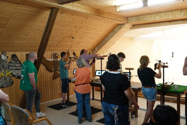 Besonders die Wanderer und Familien mit Kindern nutzten die Gelegenheit, einige Stunden am Vereinsgelände zu verbringen. Neben kulinarischen Genüssen bot der Verein ein abwechslungsreiches Programm. Für alle Altersgruppen gab es spannende Aktivitäten: Kinder konnten beim Blasrohr- und Red Dot Lichtpunktschießen, ausgestattet mit einem Lichtgewehr und einer Lichtpistole mit elektronischer Trefferanzeige, ihr Geschick unter Beweis stellen, während die Erwachsenen ihr Können beim Luftgewehr auf der neuen elektronischen Disag-Anlage testen konnten.
