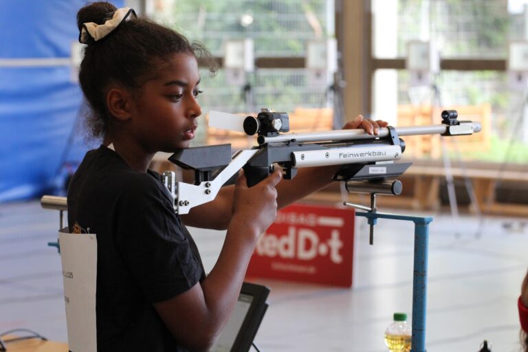 Schon am Vortag wandelte das große Helferteam der Rheinischen Schützenjugend die Turnhalle des Alexander-von-Humboldt-Gymnasiums in eine „Wettkampf-Arena“ mit bis zu 30 Ständen für die Schützinnen und Schützen um, sodass es am Samstagvormittag pünktlich losgehen konnte. 20 Schuss in 25 Minuten standen jeweils für alle Teilnehmenden in den beiden Klassen 1 (Jahrgänge 2016-2018) und 2 (2013-2015) auf dem Programm – natürlich in mehreren Lagen.