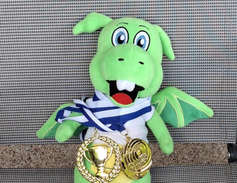 Wir schauen uns anschließend noch die Siegerehrung an. Schließlich bekommt Sandy eine Goldmedaille, aber nicht nur sie hat es auf Treppchen geschafft. Auch in der Mannschaftswertung erreichen sie und ihre Mitstreiter Gold. Ich freue mich riesig, da nehme ich auch sehr gerne die Medaillen in Empfang. Ich passe auch gut drauf auf. Versprochen!