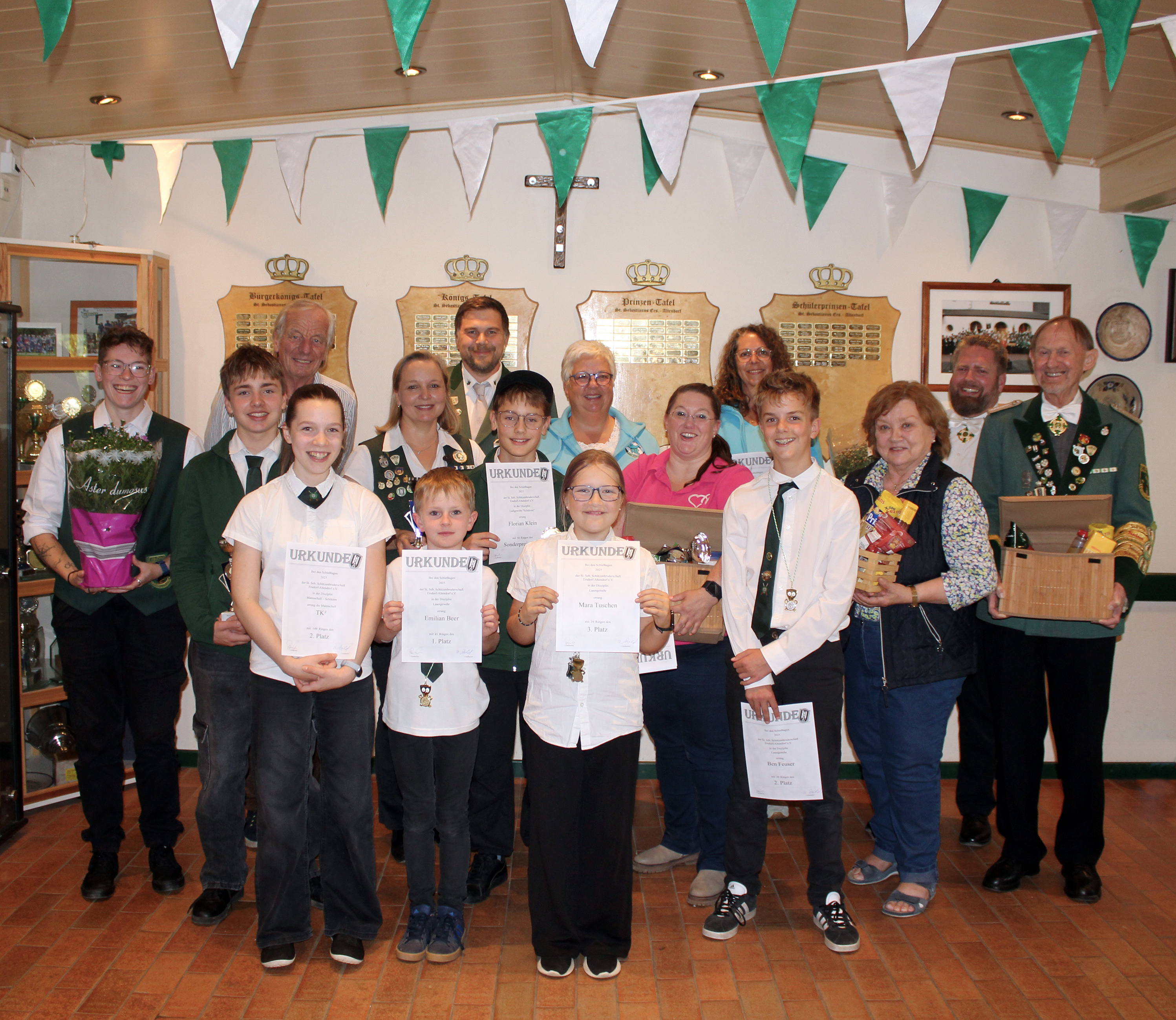 In der Jugendklasse siegte Pauline Strödter (SG Niederbieber, Kreis 112) mit einem hervorragenden Teiler von 54,3 und sicherte sich damit den Titel der Bezirksjugendkönigin 2025. Auf Platz zwei folgte Tristan Emil Schlüter (SSV Netzbach, Kreis 115) mit einem 91,7 Teiler, den dritten Platz belegte Klara Görgen (BSC Adenau, Kreis 116) mit einem Teiler von 95,7. Weitere Platzierungen: Für den Kreis 113 startete Felix Scherf von der St.Seb.SG Höhr und belegte den 4. Platz mit einem Teiler von 121,6. Den 5. Platz belegte Sebastian Münch für den Schützenkreis 111 vom SSG Asterstein mit einem Teiler von 143,7. Madlen Schwindt (Kreis 114) von der SGes Strüth erreichte den 6. Platz mit einem 185,5er Teiler.