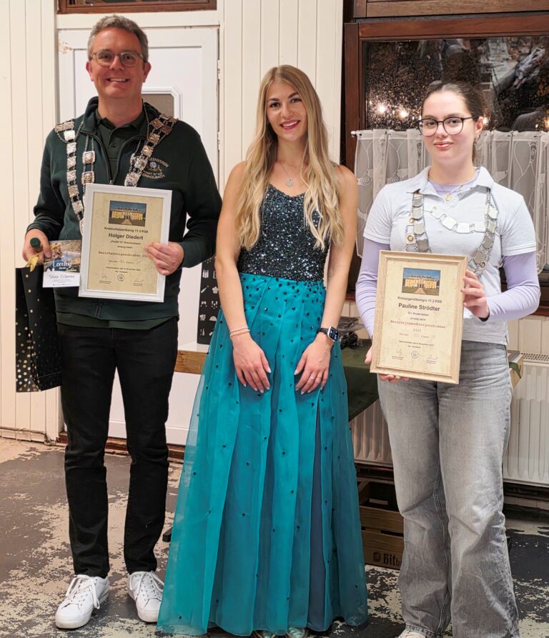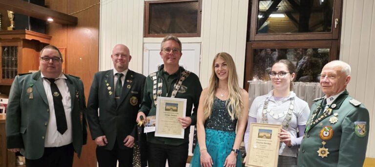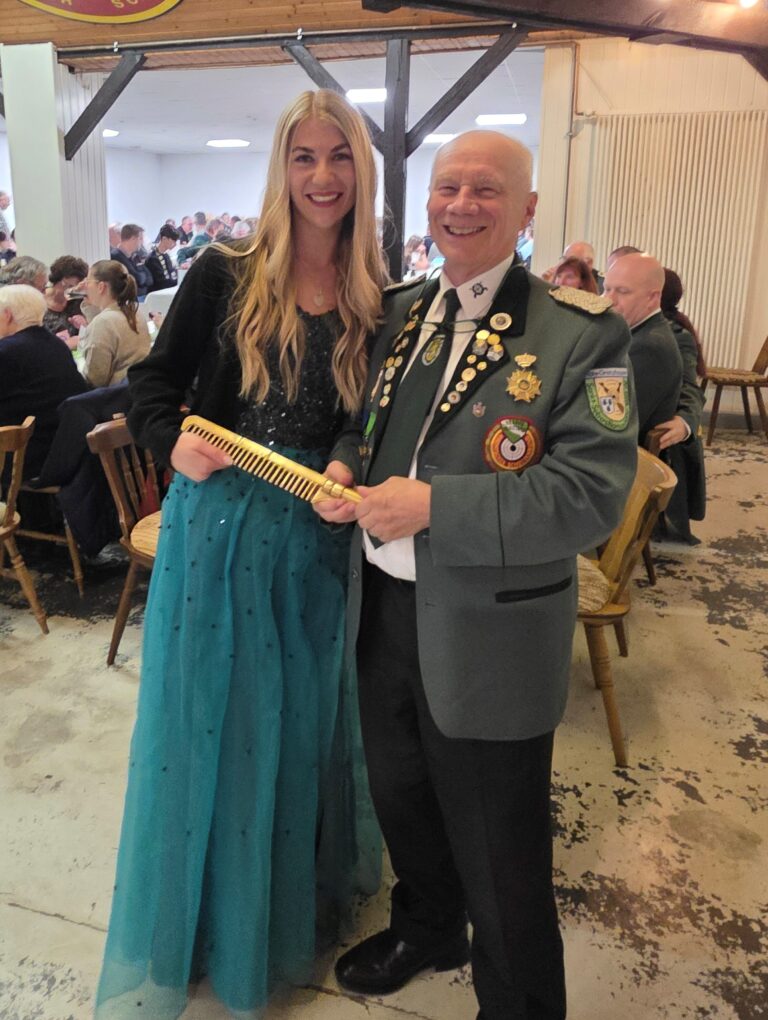 Applaus und herzliche Gratulationen erfüllten die Halle, als die neuen Majestäten Pauline Strödter und Holger Diedert offiziell geehrt wurden. „So ein knappes Ergebnis hat es in dieser Form noch nie gegeben“, kommentierte Bezirksvorsitzender Wolfgang Hartwig sichtlich begeistert. „Die Spannung hätte wirklich nicht größer sein können.“